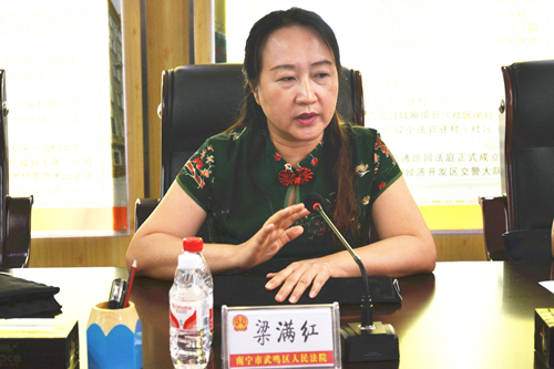 ????“武鸣区人民法院民事审判庭,现在开庭!”5月29日下午,随着清脆的法槌声响起,一起劳务合同纠纷案在我院五号法庭公开开庭审理。与此同时,一场庭审技能竞赛的观摩活动也在同步进行,由南宁市中院副院长梁满红任组长的庭审技能竞赛活动评审组一行11人现场观摩案件庭审,我院党组书记、院长傅豪及该院20余名员额法官一同到场观摩。????我院对此次庭审观摩活动进行了周密部署和精心安排,除选取较典型的一起劳务合同纠纷案件作为观摩庭参加庭审评比外,庭审全程还在中国庭审公开网进行同步直播,确保现场观摩和网络直播均顺利进行。