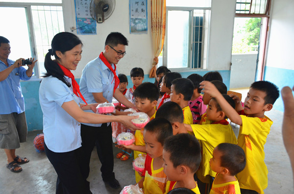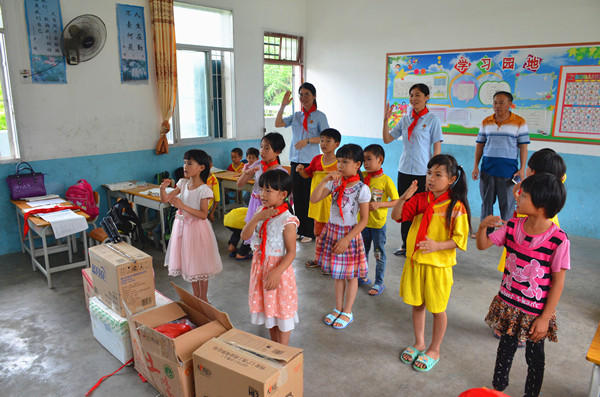 “我想要一个篮球”“我想打羽毛球”“我想买苹果吃” ……书包、篮球、苹果、羽毛球拍……这些普通平常的东西,却是一些贫困孩子不敢多想的心愿。为了庆祝六一儿童节,5月31日下午,我院党组成员、副院长谭芳兰、民一庭负责人黄成果、妇女儿童维权岗潘红玉法官一行代表我院工委和团支部来到我院扶贫挂点村武鸣区锣圩镇清凤村开展“法治点亮心愿,携梦共度六一”爱心助力活动。为清凤小学20名小朋友们送上慰问品,向5名困难儿童发放了慰问金,并把“微心愿”礼物带到了学校教室,亲手把礼物送给许下心愿的同学,用特殊的礼物和满满的爱心送去对孩子们的关怀。 活动中,谭芳兰副院长向孩子们询问了日常生活及学习情况,鼓励他们要勇于面对暂时的困难,树立良好的生活信心,保持积极向上的学习态度,用知识改变命运,将来成为国家的栋梁之材。希望老师们继续尽心尽责,做学生成长成才的引路人。清凤小学的孩子们为谭芳兰副院长一行佩戴上鲜艳的红领巾,学生代表作了发言,表示一定会努力学习,回报社会,决不辜负叔叔阿姨们的期望。随后,谭芳兰一行向孩子们发放了蛋糕、牛奶、水果等食品,与孩子们亲密交谈。在一句句贴心的话语中,让孩子们对未来充满憧憬。孩子们用纯真心向法官叔叔阿姨们说出了长大后的梦想,更多的小朋友表示希望成大后梦想也能成为一名法官,这让谭芳兰副院长欣慰不已,她表示,法院将一如既往地开展对贫困儿童的关爱和帮扶活动,让每一个孩子在充满爱心的集体内幸福、快乐地成长。